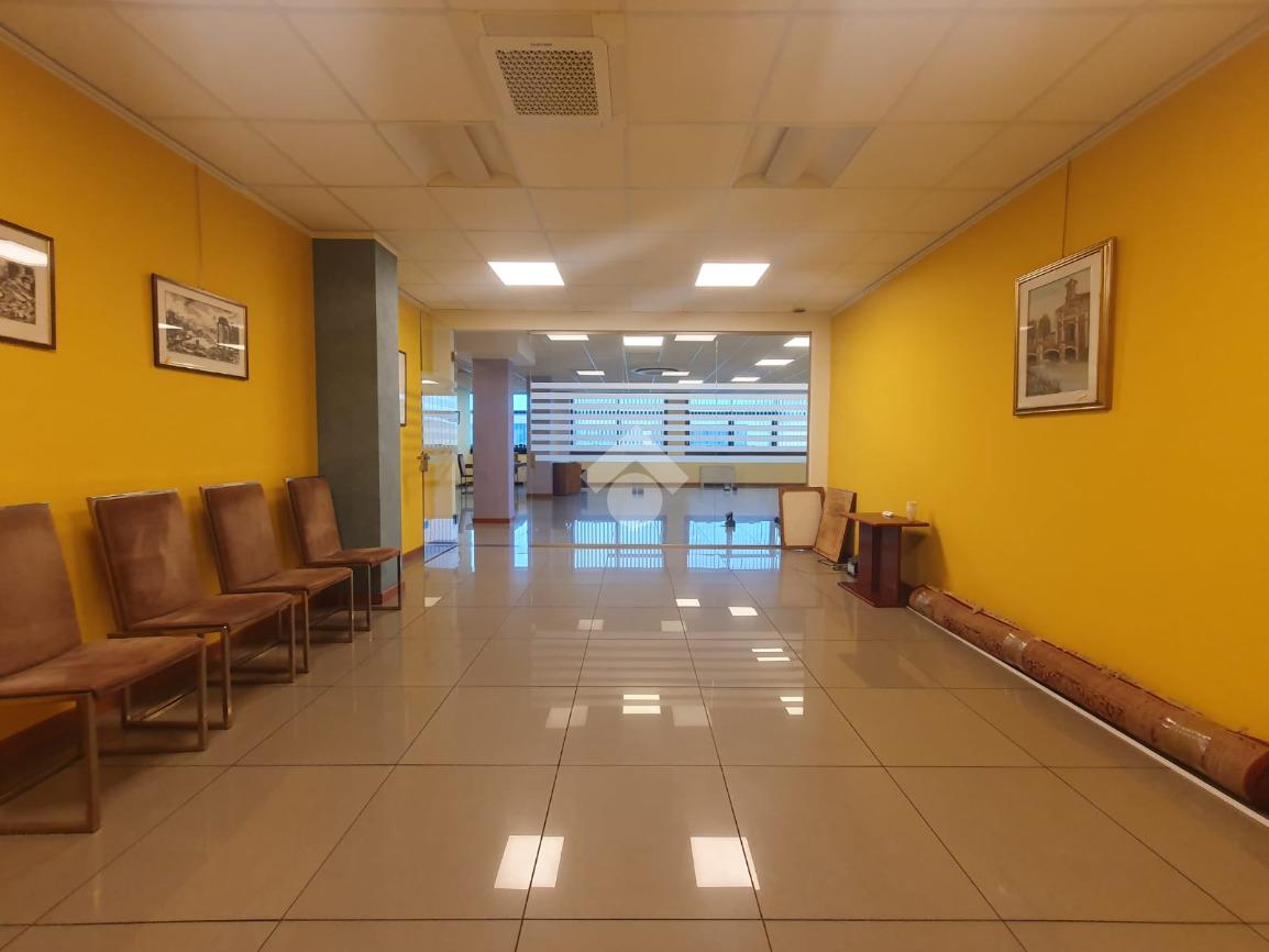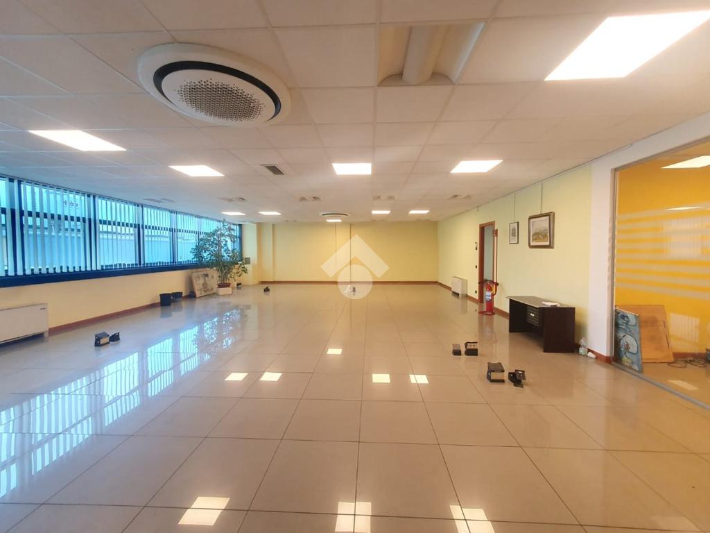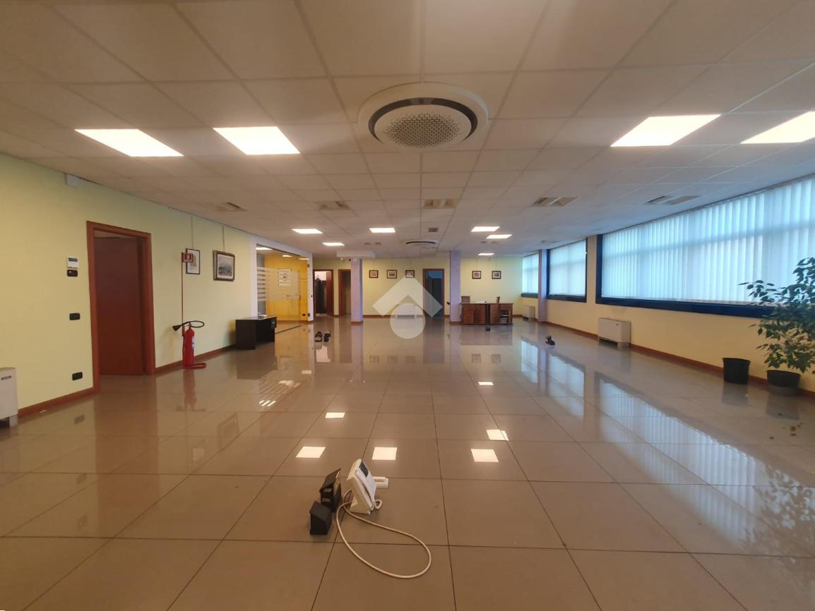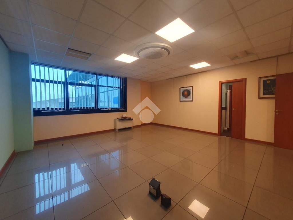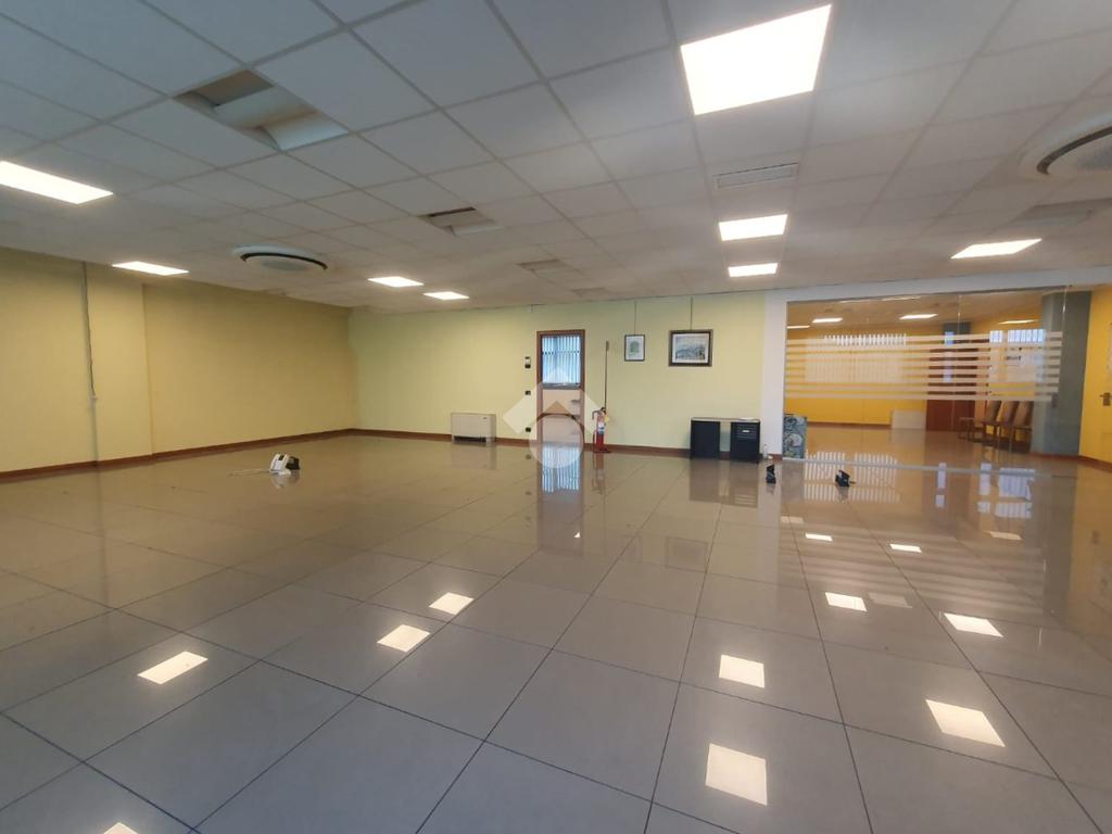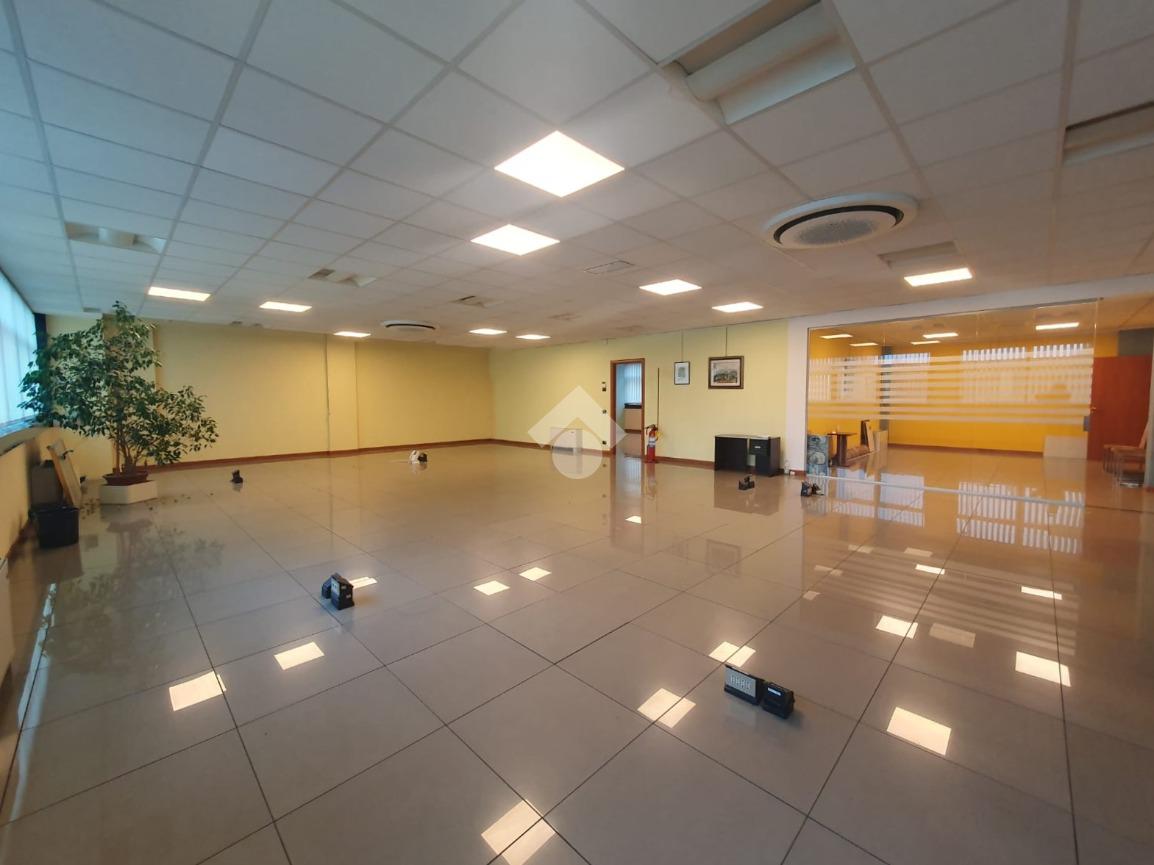 La zona a destinazione direzionale, accessibile da ingresso pedonale con ascensore e scale, è attualmente suddiviso in 4 locali con divisione in vetro ed un ampio locale open space. Internamente lo spazio si svolge con pianta regolare di forma rettangolare, rifinito con materiali di buon livello, molto illuminato date le ampie finestre e il doppio affaccio. L'impianto di illuminazione è a norma ed è presente l'impianto di riscaldamento e di condizionamento di ultima generazione AUTONOMO. La parte direzionale è collegata alla porzione di capannone da scala ed ascensore PRIVATI, dotati di uno spazio adibito ad archivi. Libero subito.
