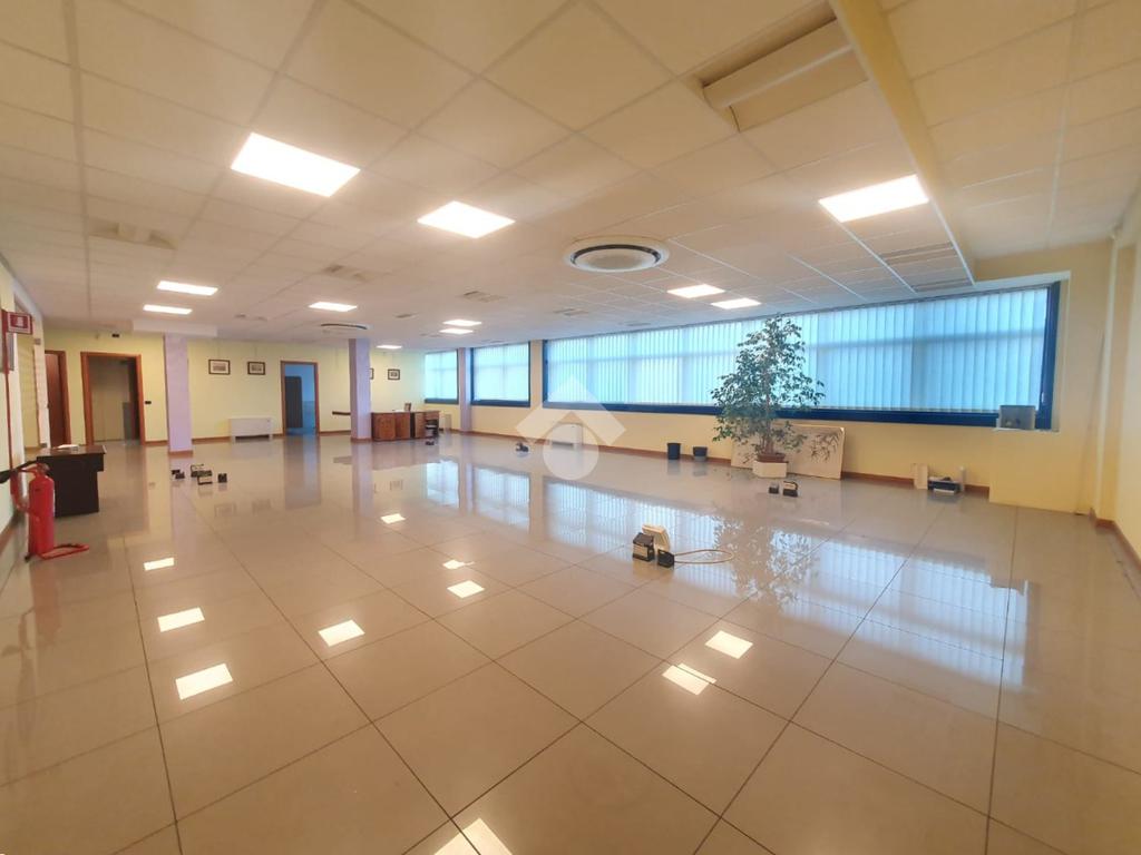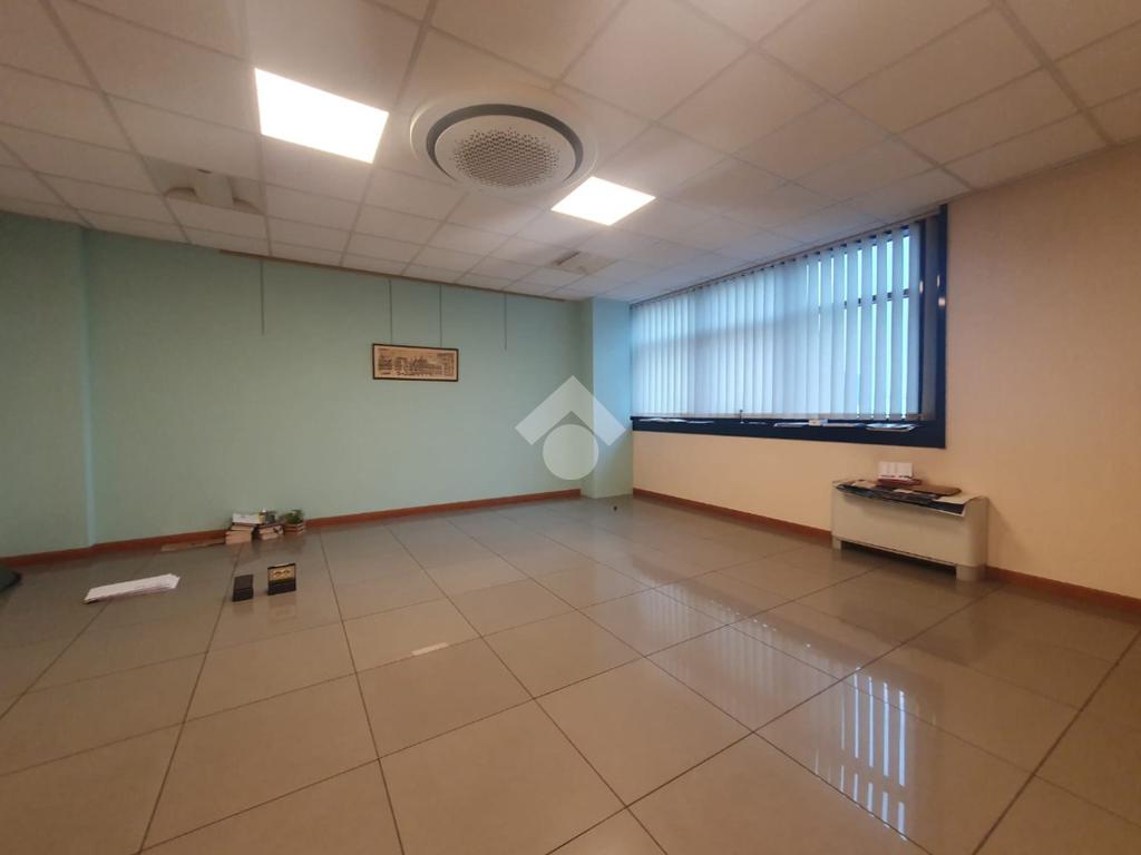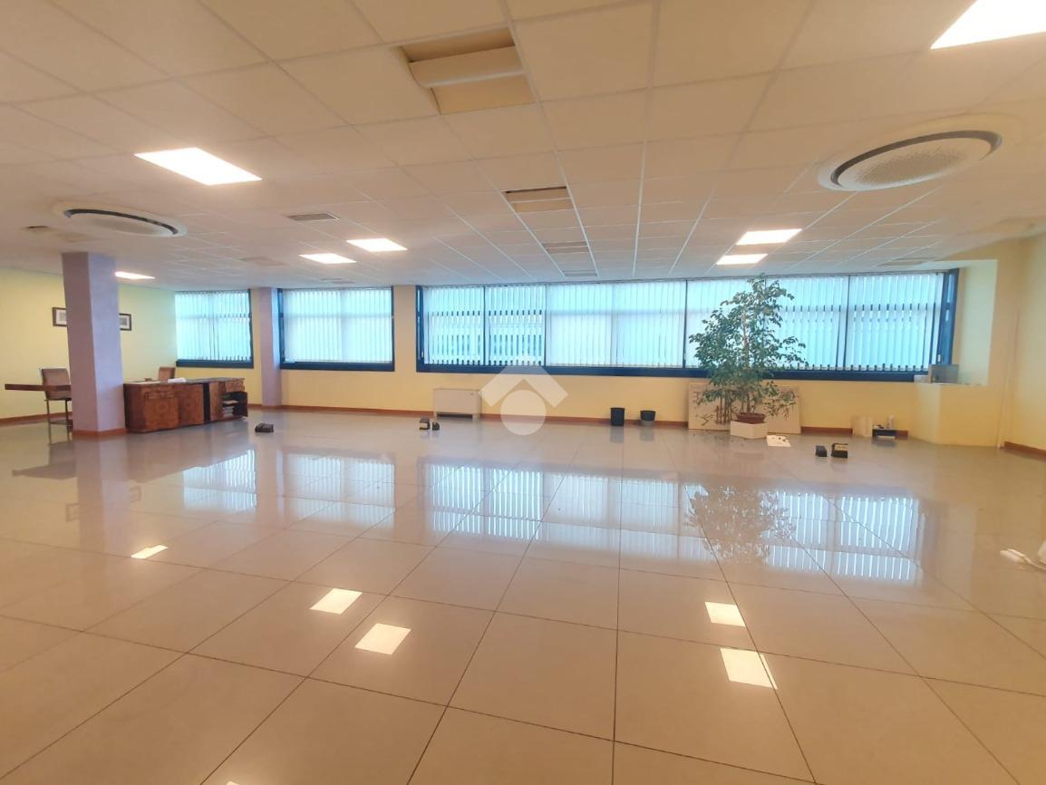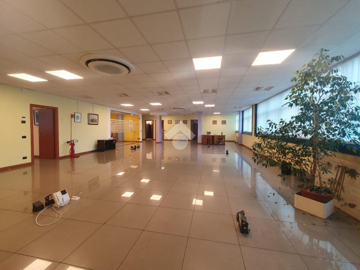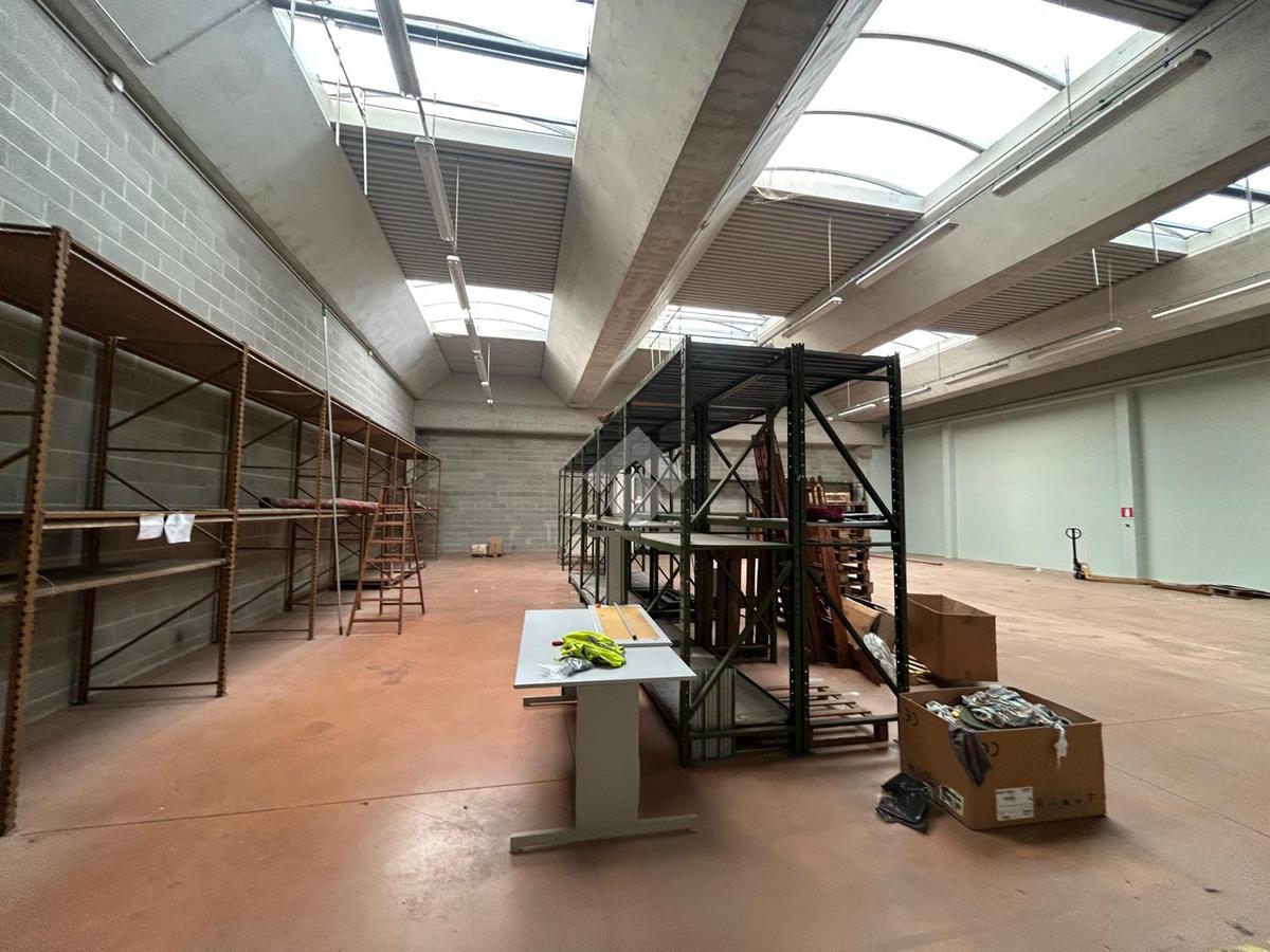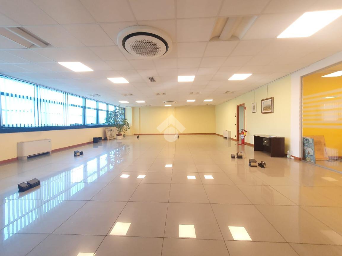 La zona a destinazione direzionale, accessibile da ingresso pedonale con ascensore e scale, è attualmente suddiviso in 4 locali con divisione in vetro ed un ampio locale open space. Internamente lo spazio si svolge con pianta regolare di forma rettangolare, rifinito con materiali di buon livello, molto illuminato date le ampie finestre e il doppio affaccio. L'impianto di illuminazione è a norma ed è presente l'impianto di riscaldamento e di condizionamento di ultima generazione AUTONOMO. La parte direzionale è collegata alla porzione di capannone da scala ed ascensore PRIVATI, dotati di uno spazio adibito ad archivi. Libero subito.