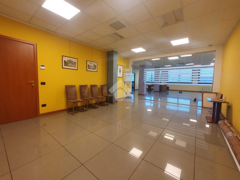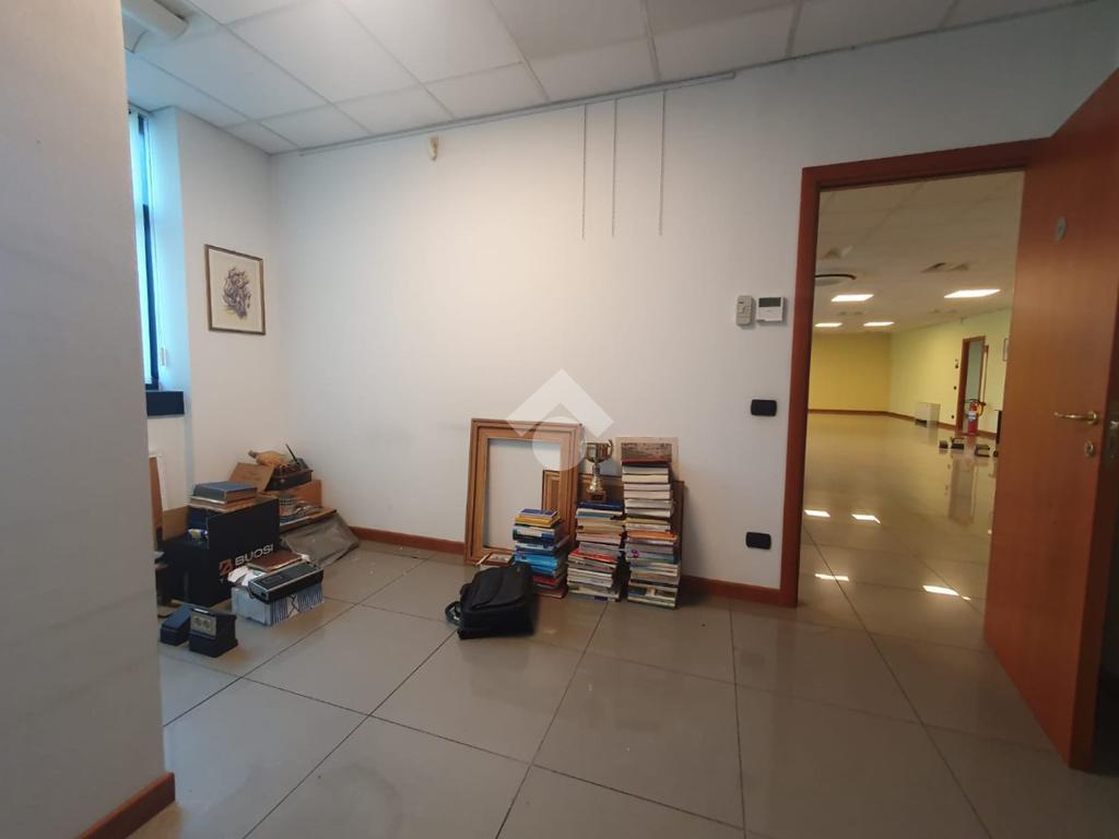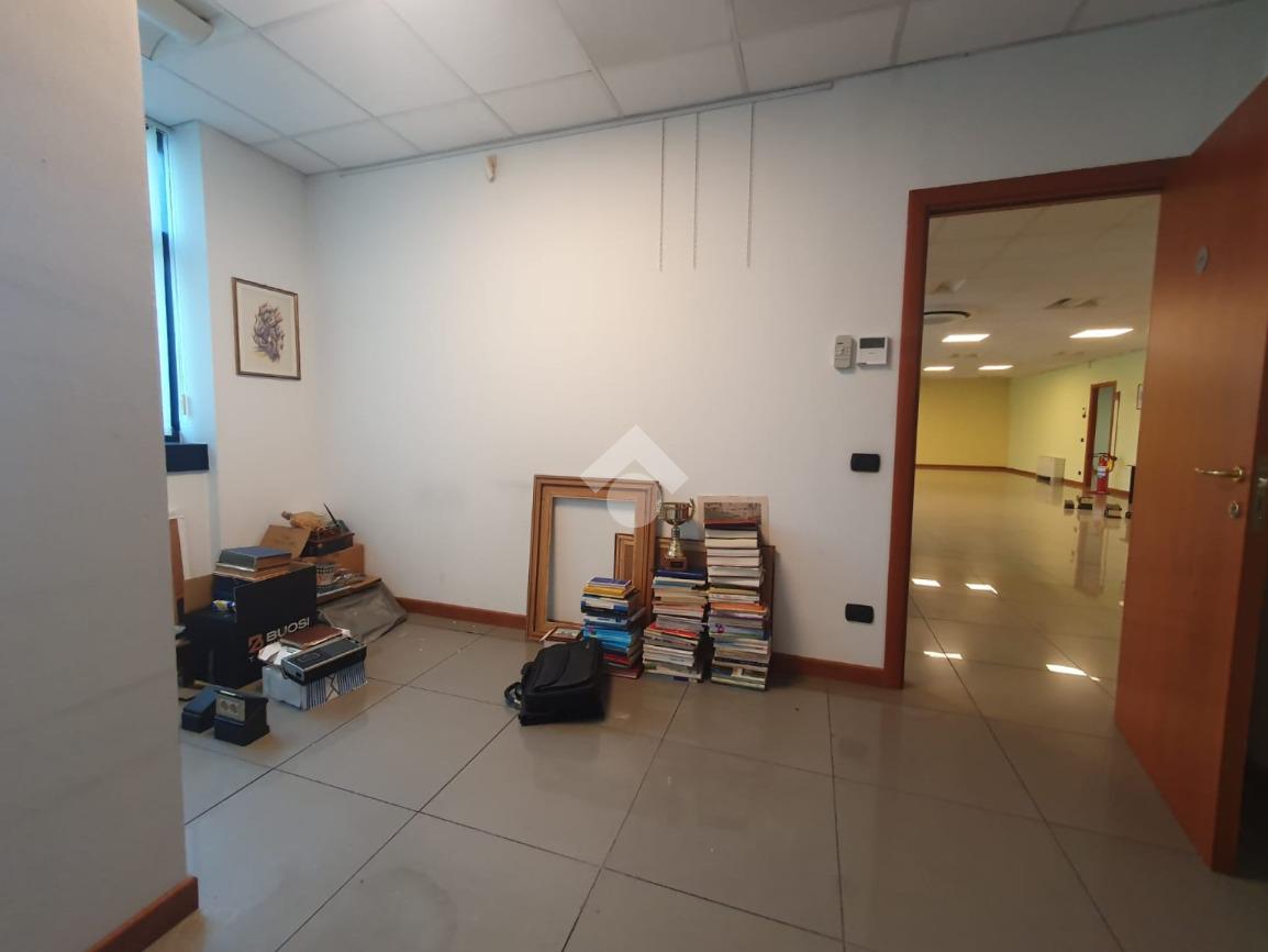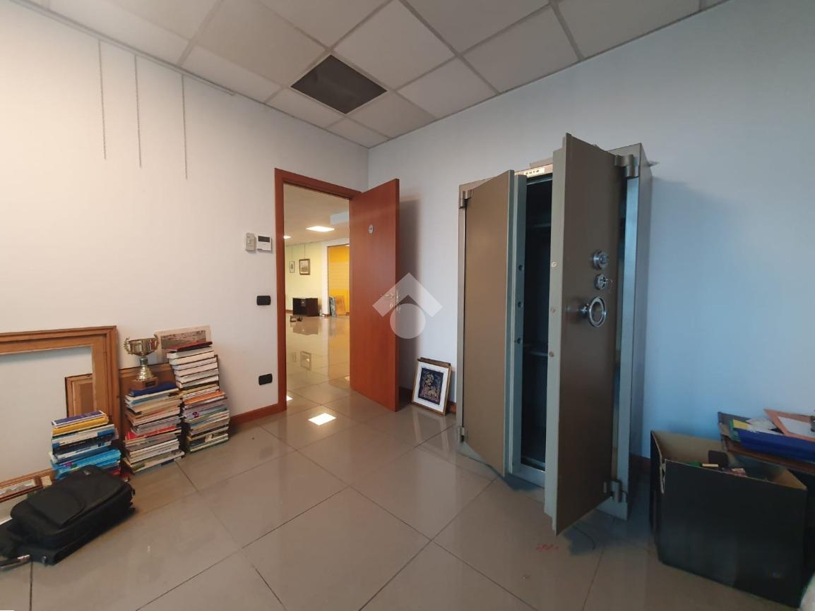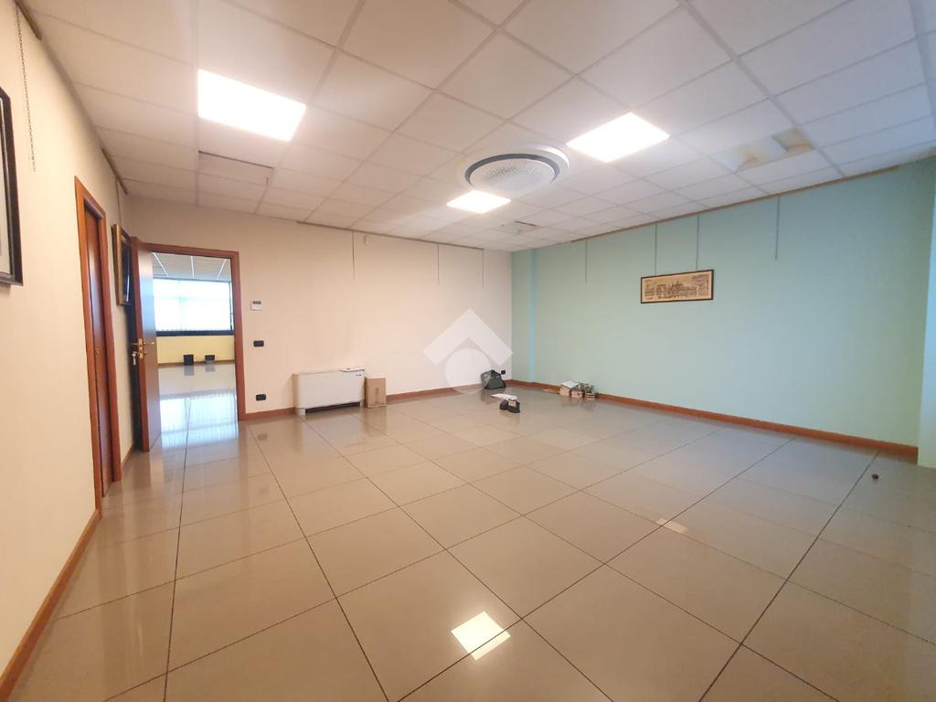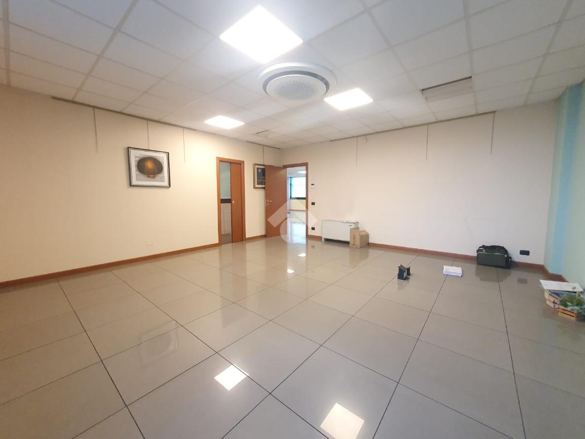 La zona a destinazione direzionale, accessibile da ingresso pedonale con ascensore e scale, è attualmente suddiviso in 4 locali con divisione in vetro ed un ampio locale open space. Internamente lo spazio si svolge con pianta regolare di forma rettangolare, rifinito con materiali di buon livello, molto illuminato date le ampie finestre e il doppio affaccio. L'impianto di illuminazione è a norma ed è presente l'impianto di riscaldamento e di condizionamento di ultima generazione AUTONOMO. La parte direzionale è collegata alla porzione di capannone da scala ed ascensore PRIVATI, dotati di uno spazio adibito ad archivi. Libero subito.