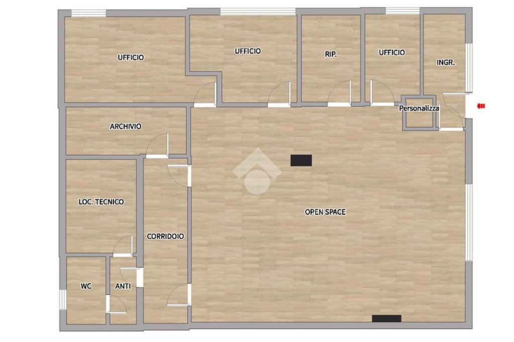 - Servizi igienici: l'ufficio è corredato di 1 servizio igienico, con antibagno.
